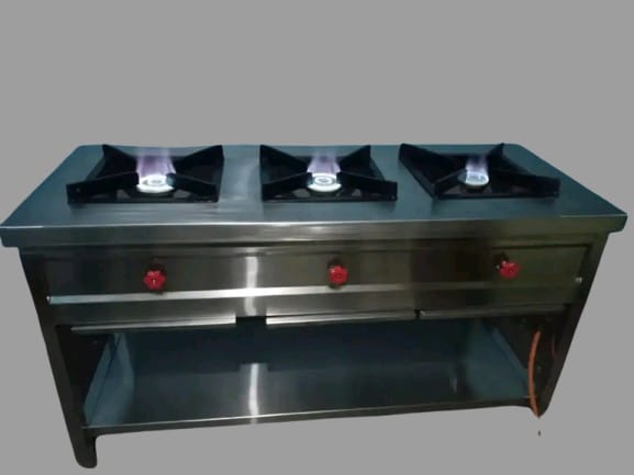 3-burner gas cooker Kenya. Medium-capacity commercial kitchen equipment. Versatile restaurant cooking solution. Professional quality!